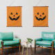 Cute orange and black Jack o lantern pumpkin face spooky scary funny cute Halloween Sign decorations. Set of two Halloween Hanging Tapestries.
