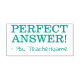 This inspiring rubber stamp design features the positive feedback message "PERFECT ANSWER!" and a personalized teacher name. It could be used by a teacher, educator, instructor, or tutor when marking assignments, to indicate that the student has done well.