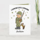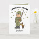 A simple military passing out greeting card featuring a cartoon image of a soldier with a dog and scattered stars, the word "congratulations", and the name of the soldier. The font styles, sizes and colours can be changed by clicking on the customize further link after personalizing.