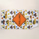 This beach towel, with its fun illustrations of construction vehicles, signs, and hard hats, is great for future contractors and construction workers. Personalize with the name of your choice, which will appear on an orange, construction-zone road sign.