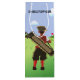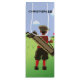 A fun cartoon design featuring a golfer in vintage attire standing in the rough looking towards the green and flag. The golfer is carrying a golf bag with golf clubs. Any initials can be entered to create a unique monogrammed golf gift for the kean golfer or golf fan
