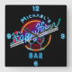 Fun and modern this neon look Happy Hour Home Bar Cocktail Glasses Drinks sign themed wall clock makes a great dad, man, husband, granddad, boyfriend, uncle, boss gift. Add a name to personalize. In this collection of neon light styled wall clocks are clocks for man cave (bar, happy, hour, beer and cocktail themes), coffee and cafe themes for the kitchen or workplace, car and garage themed for mechanics, kids clocks for boy or girls bedroom with dance music or gamer themes. Lots to choose from. Browse the attached collection to view them all.