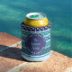 A fun can cooler with an abstract wave and water background. The message, "Welcome To Our Pool...Jump In & Have Fun" on the front. Personalize with name. The back has the message, "The Tan Lines Will Fade, But The Memories Will Last Forever"