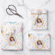 This wrapping paper features a colourful sprinkle design over a black background with 5 photo bubbles. Easily customize the name and add 5 uniques photos of the guest of honour. A colourful, fun, unique wrapping paper — perfect for a tween girls birthday party!