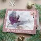 Fun Pink Christmas Tree Snowflakes Photo Holiday Card