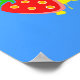 Poster with a summery theme. Designed with a pink popsicle and some red strawberries and yellow paint splashes. Blue background.