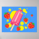 Fun Pink Popsicle and Strawberries Illustration Poster