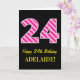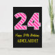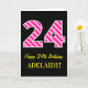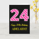 Fun Pink Striped "24"; Happy 24th Birthday; Name Card