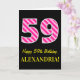 Fun Pink Striped "59"; Happy 59th Birthday; Name Card