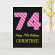 Fun Pink Striped "74"; Happy 74th Birthday; Name Card