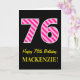 Fun Pink Striped "76"; Happy 76th Birthday; Name Card
