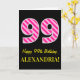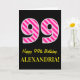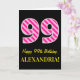 Fun Pink Striped "99"; Happy 99th Birthday; Name Card