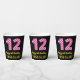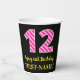 Fun Pink Stripes “12”: Happy 12th Birthday + Name Paper Cups
