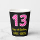 Fun Pink Stripes “13”: Happy 13th Birthday + Name Paper Cups
