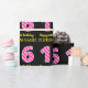 This fun birthday-themed wrapping paper design features a large number "16", with a dark pink and light pink stripes pattern. It also features the message "Happy 16th Birthday,", and a custom name. The background is coloured black. Wrapping paper like this might be used when wrapping gifts being given to somebody in celebration of their sixteenth birthday. [~Z0000376]