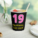 Fun Pink Stripes “19”: Happy 19th Birthday + Name Paper Cups
