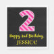 This fun birthday-themed paper napkin design features a large number "2" with a dark pink and light pink stripes pattern, along with the message "Happy 2nd Birthday,", and a customizable name. The background is coloured black. Fun, personalized paper napkins like this might be used at a birthday celebration being held in honour of somebody’s 2nd birthday. [~Z0000380]