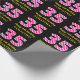 This fun birthday-themed wrapping paper design features a large number "35", with a light pink and dark pink stripes pattern. It also features the message "Happy 35th Birthday,", and an editable name. The background is coloured black. Birthday themed wrapping paper like this might be used when giving a gift or present in celebration of somebody’s thirty fifth birthday. [~Z0000376]