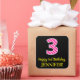 Fun Pink Stripes “3”: Happy 3rd Birthday + Name Square Sticker