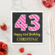 Fun Pink Stripes "43"; Happy 43rd Birthday; Name Napkin