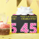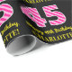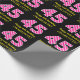 This fun birthday-themed wrapping paper design features a large number "45" with a light pink and dark pink stripes pattern, along with the message "Happy 45th Birthday,", and a customizable name. The background is coloured black. Birthday themed wrapping paper like this might be a fun way to wrap a gift or present being given to celebrate somebody’s 45th birthday. [~Z0000376]