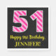 Fun Pink Stripes "51"; Happy 51st Birthday; Name Napkin