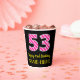 Fun Pink Stripes “53”: Happy 53rd Birthday + Name Paper Cups