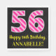 Fun Pink Stripes "56"; Happy 56th Birthday; Name Napkin