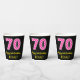 Fun Pink Stripes “70”: Happy 70th Birthday + Name Paper Cups