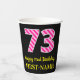 Fun Pink Stripes “73”: Happy 73rd Birthday + Name Paper Cups