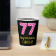 Fun Pink Stripes “77”: Happy 77th Birthday + Name Paper Cups
