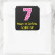 Fun Pink Stripes “7”: Happy 7th Birthday + Name Square Sticker