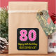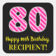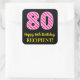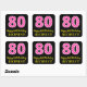 Fun Pink Stripes “80”: Happy 80th Birthday + Name Square Sticker
