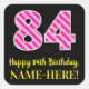 Fun Pink Stripes “84”: Happy 84th Birthday + Name Square Sticker
