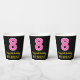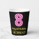 Fun Pink Stripes “8”: Happy 8th Birthday + Name Paper Cups