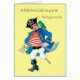 A fun Get Well card, with a jolly pirate and his parrot on a white background, from a watercolour painting by Judy Adamson. The front cover text is 'A little bird told me you're feeling poorly!' You can edit the inside text if you wish.