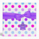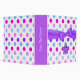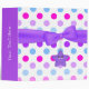 All purpose Avery three ring binder, done in pink, purple and blue polka dots against a white background. Graphics of a pretty purple ribbon and bow runs across the middle front of the binder, with a cute purple star hanging from the bow. The spine is done in solid purple with white text ready to personalize. Great for home or school. Inserts and pages sold separately at your local discount, office supply, or craft shops.
