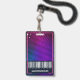 Fun neon concert event badge. Our design features a fun bright pink and purple colour palette. The perfect event badge for concerts, music festivals, corporate event parties, etc. Customize with your photo, barcode, date, location, and website.
