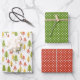 Fun Red Green Yellow Abstract Pine Tree Pattern Wrapping Paper Sheet