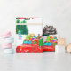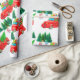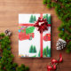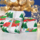 A red pick-up truck with "Let it snow" inscribed on the door has a bed full of Christmas lights, a tree, gaily wrapped packages and even a dog. In the upper corners of this fun wrapping paper scene are a number of watercolored evergreens, including one with a strand of red bulbs. Two snowmen dressed for winter have turned from the packages beneath their own tree to say "hi" to those in the truck. Cheerful and fun, this is a terrific paper for your BEST gifts.