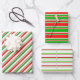 These fun designs feature Christmas themed striped patterns having colours like green, white, and red. Wrapping paper sheets like these might be fun to use when wrapping gifts being given to celebrate Christmas.
