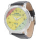 Fun retirement watch to personalize for a postal worker. Remember to change "J.B.A." to the retired person's initials or first name. The background image shows colourful envelopes.