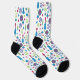 Retro design, featuring colorful elements of peace, love, and music. These fun, colorful, socks are perfect for cool, far out, funky, peace-loving, and groovy men and women. This 1970s pattern makes a fun, retro theme for anyone.