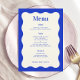 Fun Retro Blue Modern Wavy Mariage Menu Cartes Menu Cartes