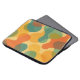 This contemporary laptop sleeve features a vibrant pattern of abstract geometric shapes, highlighted by a striking color palette that includes teal, blue, green, orange, and yellow. Its ornate and eclectic style appeals to artistic fashionistas, trendsetters, and fans of vintage retro art, as well as those who appreciate abstract digital designs.