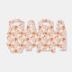 This design showcases a delightful retro vintage Halloween pattern with a playful and nostalgic vibe. The background is a soft peachy pink, providing a warm and muted canvas for the design. The pattern features animated ghosts and pumpkins with expressive faces, all dressed up and in action, reminiscent of classic cartoon characters. The ghosts are depicted in various dynamic poses, while the pumpkins are shown with arms, legs, and exaggerated facial expressions, adding to the vintage charm.