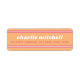 Fun return address labels with white and raspberry pink borders top and bottom on a warm orange background. Retro typography. Fonts and colours can be customized with the design tool.
