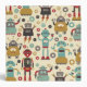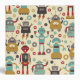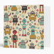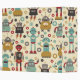 Fun Retro Robots Illustrated Pattern (Cream) Binder