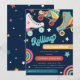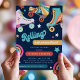 Feeling groovy about Rolling into Parenthood' This Roller Skate themed Baby shower invite is just to cool for school! Design features a trendy navy blue background with retro roller skate illustrations, stars and colourful bold fonts. Perfect for a gender neutral baby shower celebration.