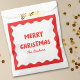Add a festive touch to your holiday celebrations with these charming Christmas favour bags! Featuring a playful wavy border and bold 'Merry Christmas' text in classic red, these bags bring a touch of retro holiday cheer to your gifts. Customizable with your family name, they're perfect for filling with sweet treats, small gifts, or seasonal goodies to share with guests. Ideal for holiday parties, Christmas gatherings, or as thoughtful take-home favours, these bags make the season extra special. Spread the holiday spirit with a personal touch!